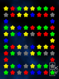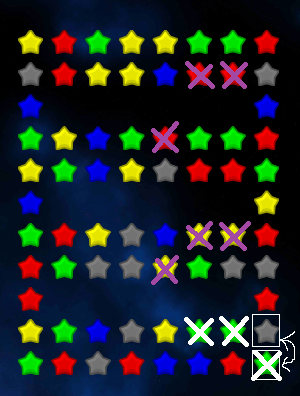 • Notice this creates a match of 3 green stars with the other 2 green stars in the row from the bottom (marked with a white X).